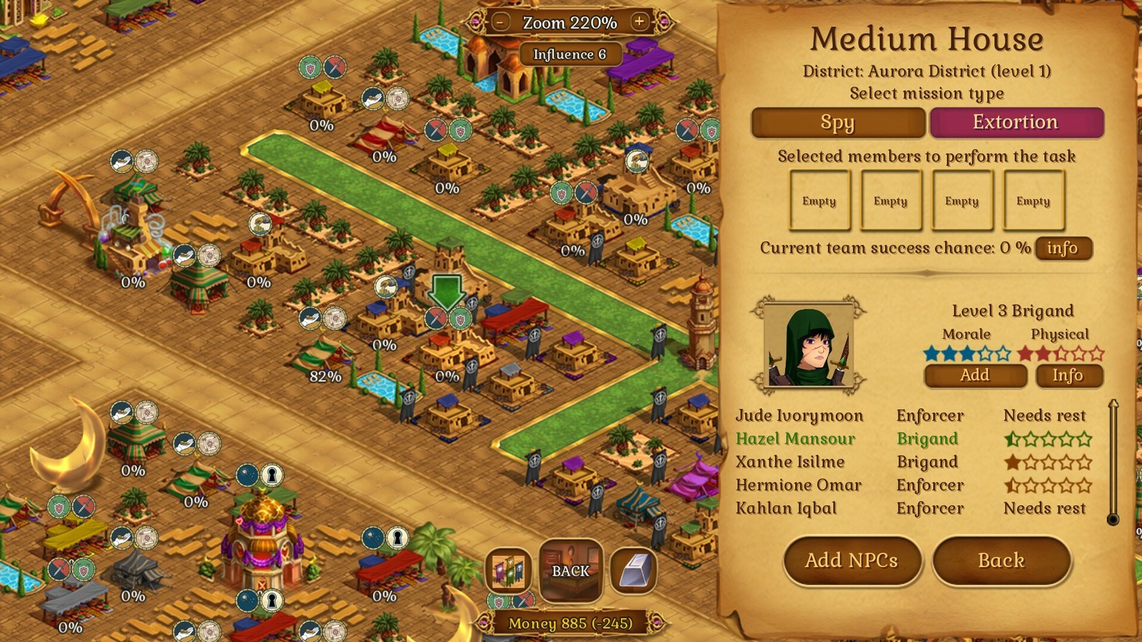 As your organization grows in size and influence, the four families may seek your services. However, your ultimate objective is to defeat them all and fully conquer the town of Dingirra.